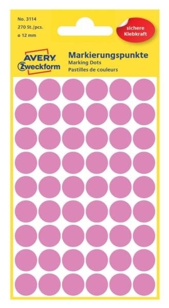 Etikety Avery 3114 kolečka, průměr 12 mm, 270 ks, růžové