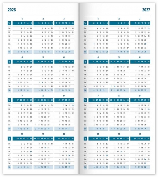 - přehledný kalendář 2026 a 2027