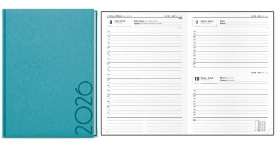 - neobyčejný diář s lesklým povrchem ze strukturovaného materiálu s ražbou roku