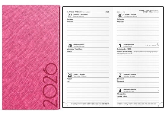 Diář Jakub Tora, týdenní, kapesní, růžový 2026