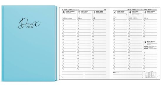 Diář Oskar Pastel, týdenní, A5, lamino, modrý 2026