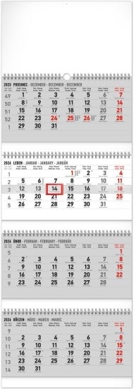 Kalendář nástěnný, čtyřměsíční, standard 2026