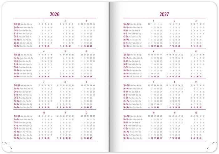 - kalendárium: šestijazyčné (CZ, SK, EN, DE, HU, RU) denní jmenné
