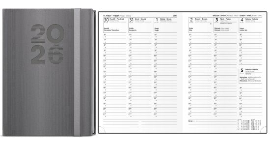 Diář Oskar Vigo, týdenní, A5, šedý 2026