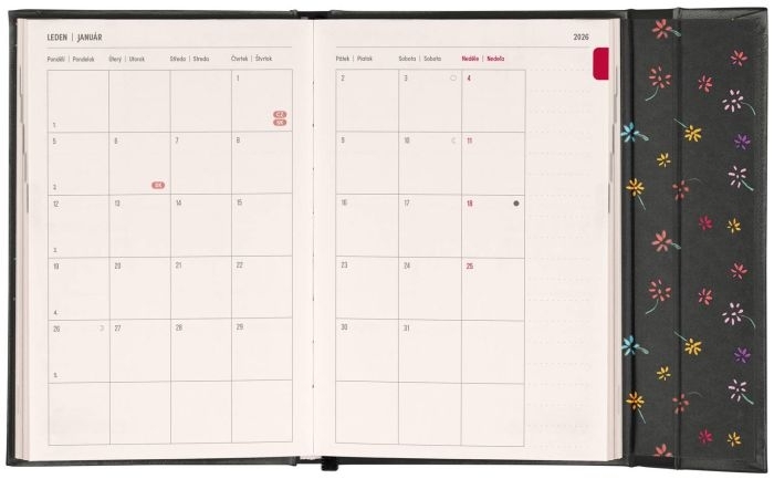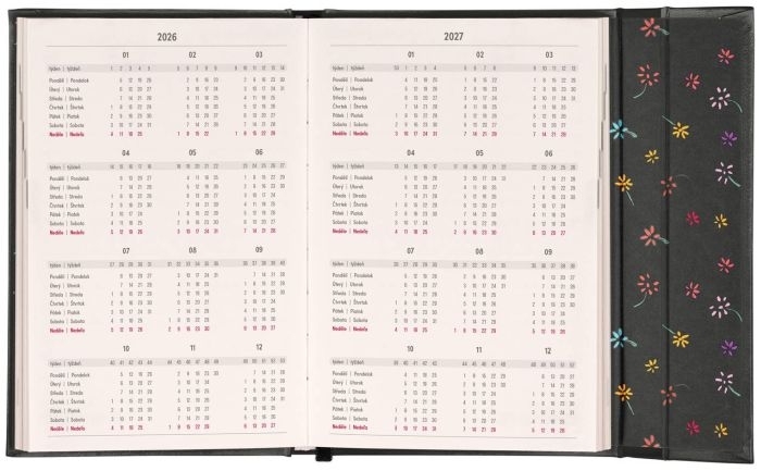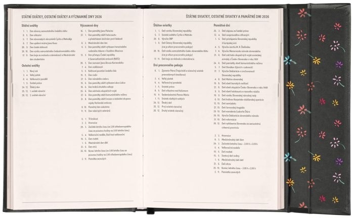 - kalendárium: šestijazyčné (CZ, SK, EN, DE, HU, RU) týdenní vertikální jmenné