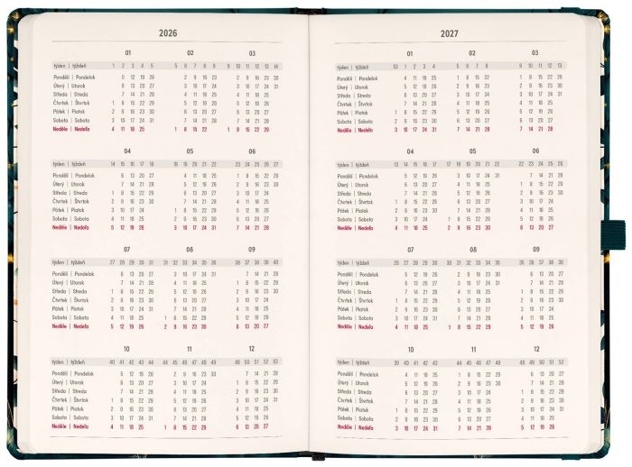 - řádkové rozvržení s prostorem pro poznámky na každý den