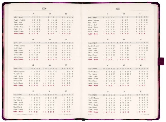 Diář obrázkový, týdenní, 13 x 21 cm, Fialové květy 2026