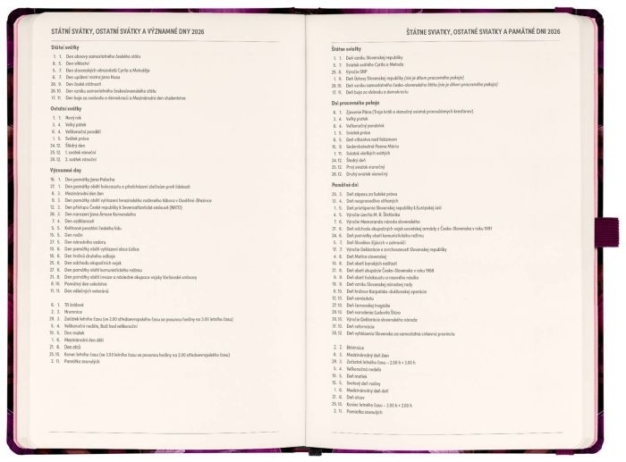 - kalendárium: vícejazyčné (EN, DE, ES, FR, IT, HU, PL, NL, BE) týdenní jmenné