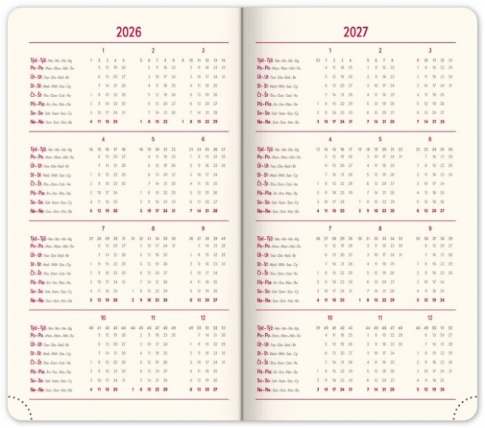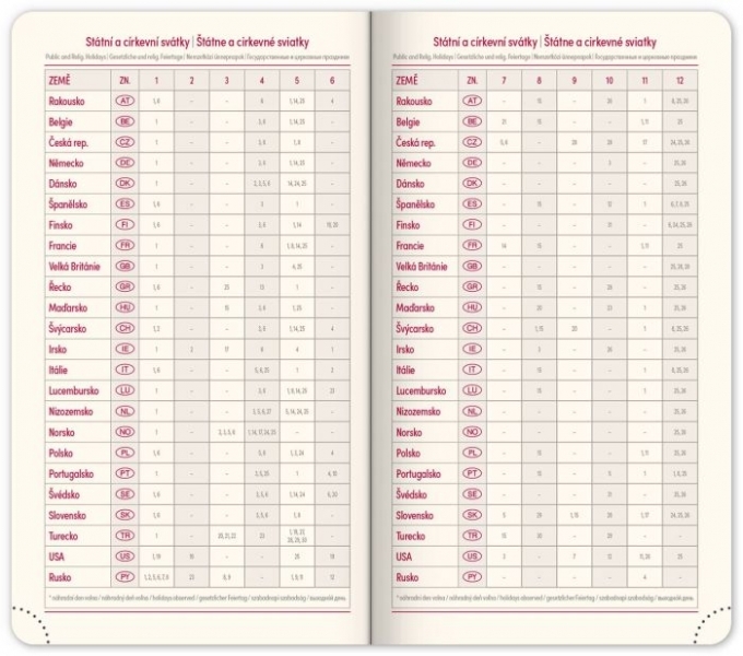 - kalendárium: šestijazyčné (CZ, SK, EN, DE, HU, RU) týdenní jmenné