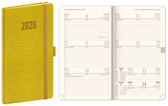 Diář Rivoli, týdenní, kapesní 9 x 15,5 cm, žlutozelený 2026