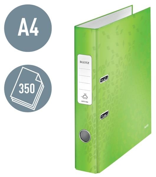 Pořadač pákový Leitz WOW 180 stupňů A4 52 mm, zelený