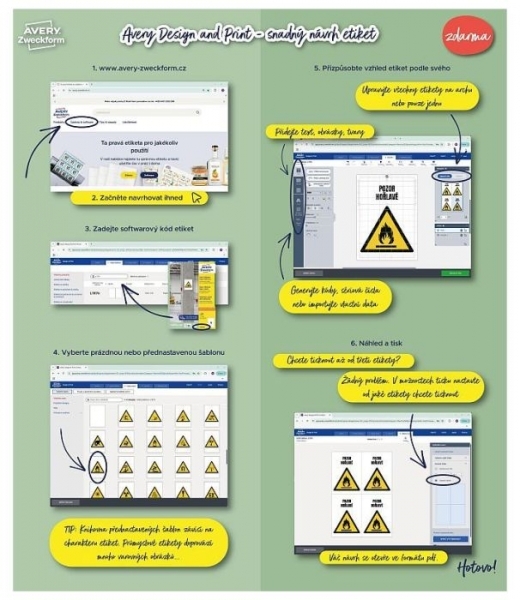 - možnost využití bezplatného online programu Avery Design & Print