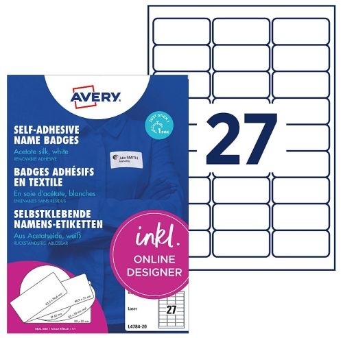 Jmenovka samolepicí Avery L4784, 63,5x29,6 mm, bílá, 20 lis.