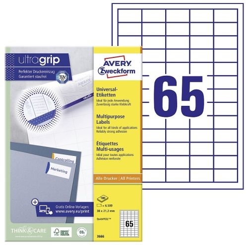 Etikety univerzální Avery 3666, 38x21,2 mm, bílé, 100 listů