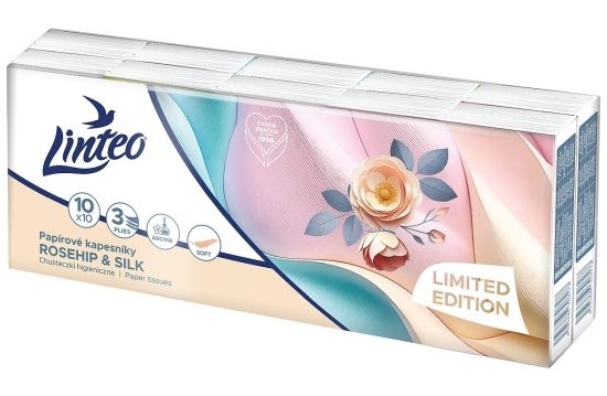 Kapesníčky papír. Linteo Rosehip & Silk, třívrstvé, 10x10 ks