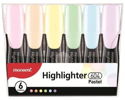 Zvýrazňovač Monami 604, seřízlý hrot 1 - 4 mm, 6 past. barev