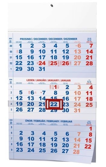 Kalendář nástěnný, tříměsíční, modrý 2026