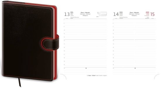Diář Flip, denní, A5, koženka, černý/červený
