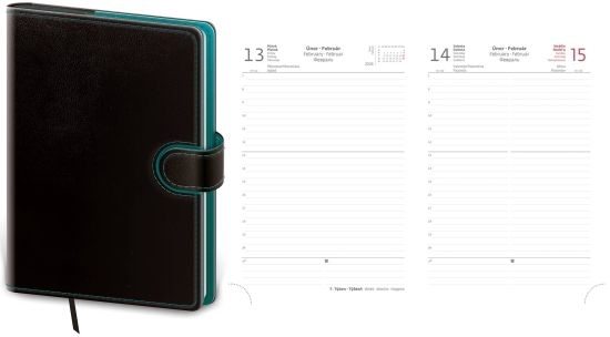 Diář Flip, denní, A5, koženka, černý/petrolejový