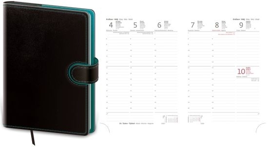 Diář Flip, týdenní, A5, koženka, černý/petrolejový