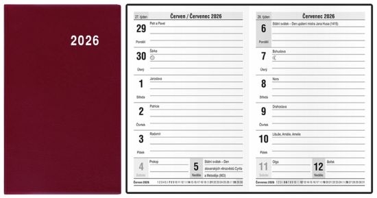 Diář Gustav, týdenní, kapesní, PVC, bordó 2026